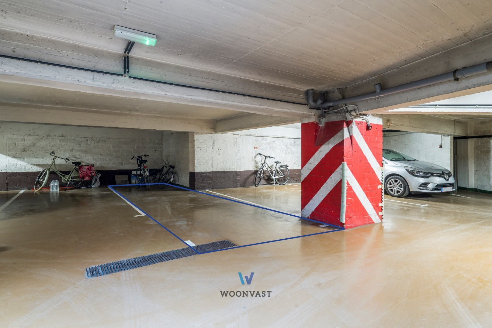 Binnen vinden we aan de voorzijde een lichtrijke leefruimte met open keuken. Achteraan zijn er 2 slaapkamers waarvan 1 met terras. Via de inkomhal met dressingkast, vinden we de badkamer met douche en wastafel alsook een apart toilet. Op de kelderverdieping bevindt er zich een privatieve kelder en een staanplaats die optioneel kan bijgekocht worden (€29.900).
