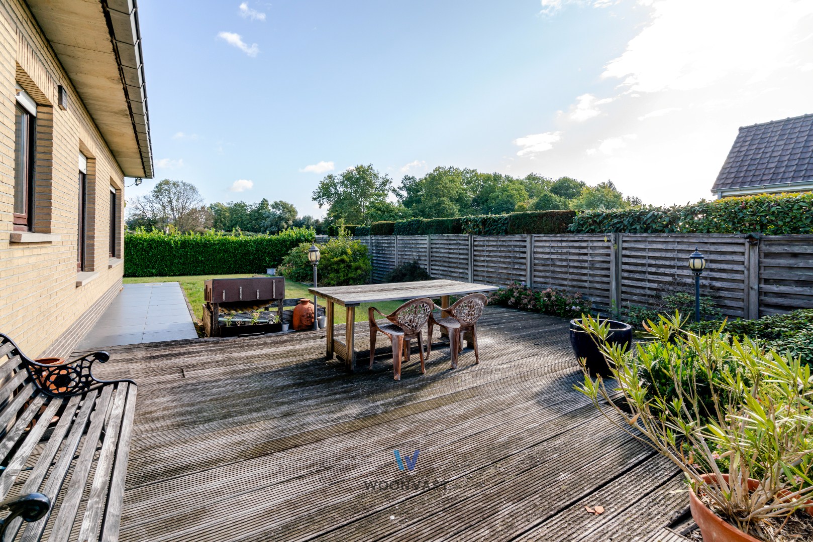 Een bijkomende troef is dat de woning volledig onderkelderd (kruipkelder) is. Buiten geniet u van een ruime, groene tuin met veel privacy. De dubbele garage en brede oprit zorgen voor voldoende plaats voor meerdere wagens.