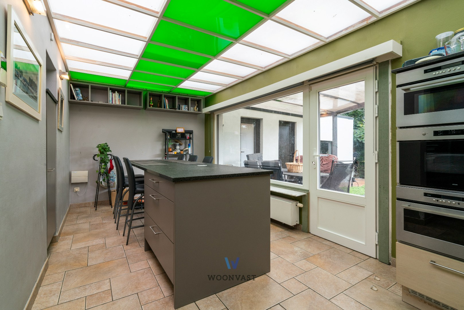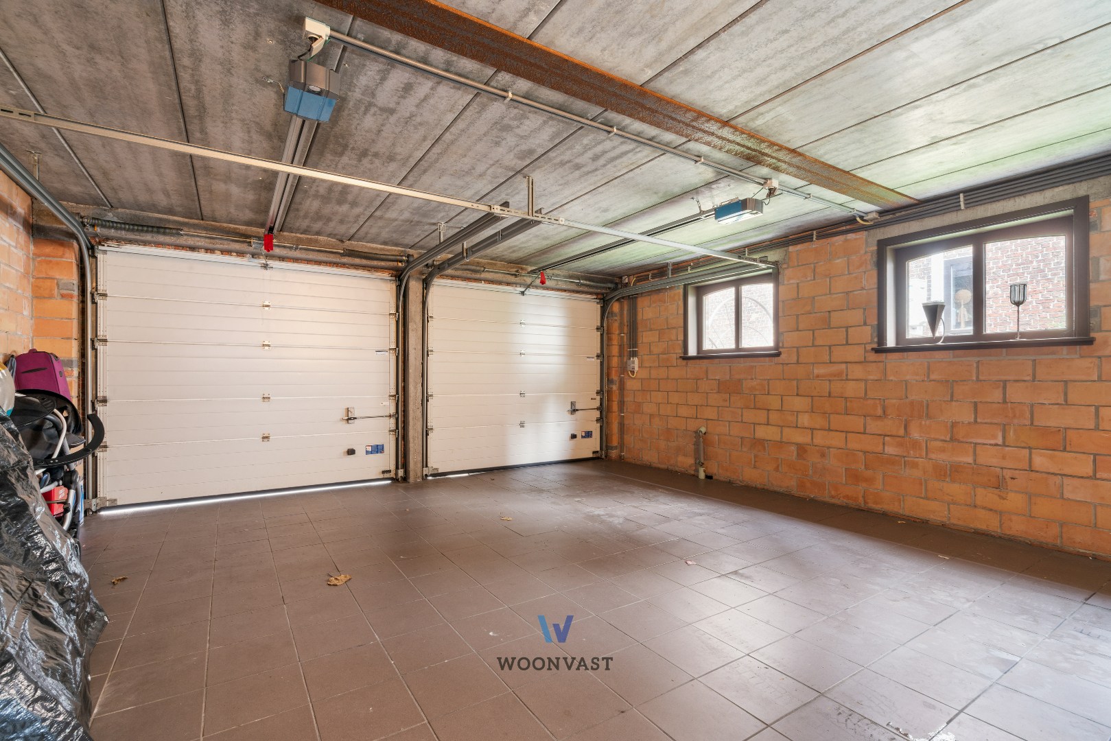 De diepe, zonnige tuin (886 m²) biedt volop privacy. Extra troef: een garage van 70 m² met dubbele poorten én een ruime bovenverdieping (in opbouw als mancave of atelier).