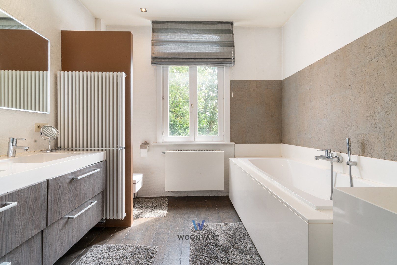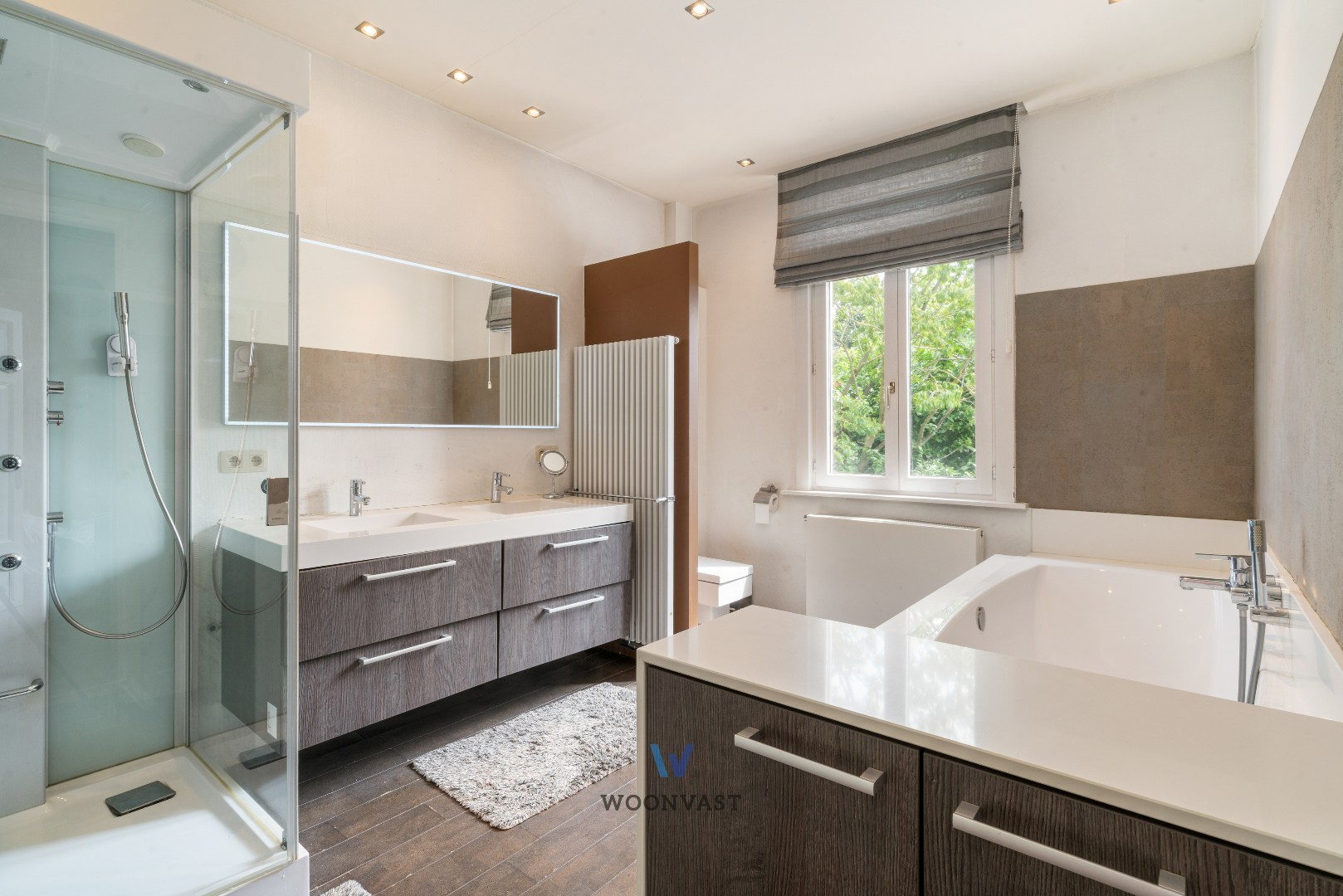 Op de eerste verdieping: 3 ruime slaapkamers en een grote badkamer met ligbad, inloopdouche en dubbele lavabo. Bovenin wacht een ruime zolderkamer en een ingebouwde sauna.