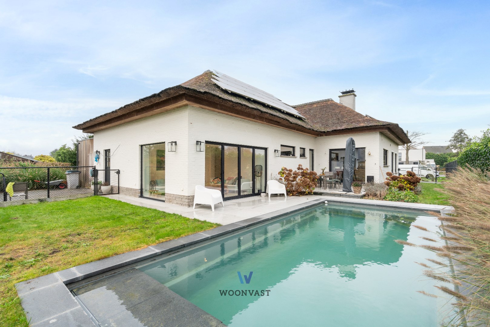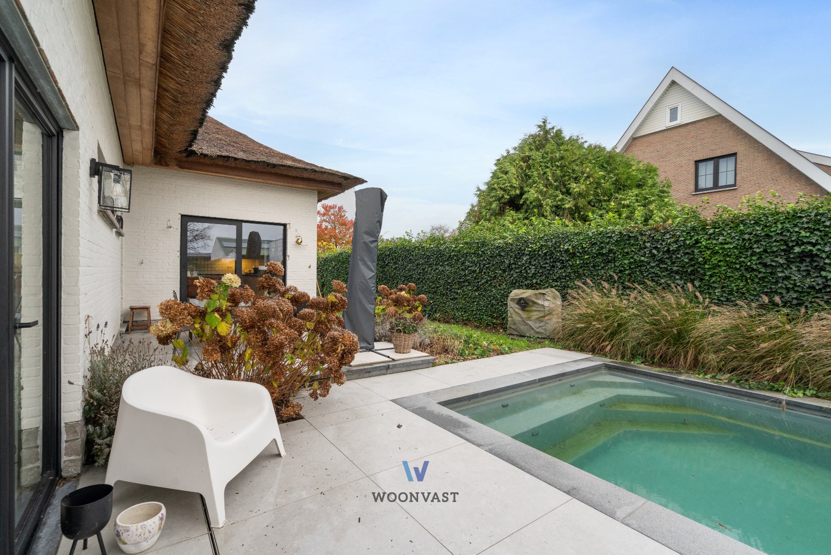 0: Inkomhal, salon en eetkamer, volledig uitgeruste keuken, nachthal met apart toilet, badkamer, tuinkamer met direct zicht en toegang tot de tuin en het zwembad, ruime en praktische wasplaats, masterbedroom, dressing, bureau en berging.