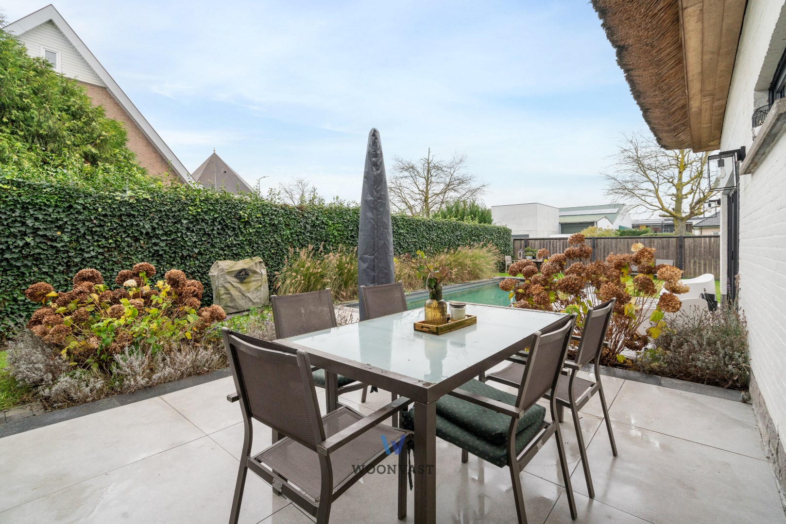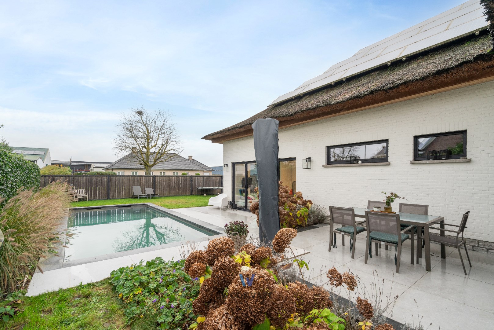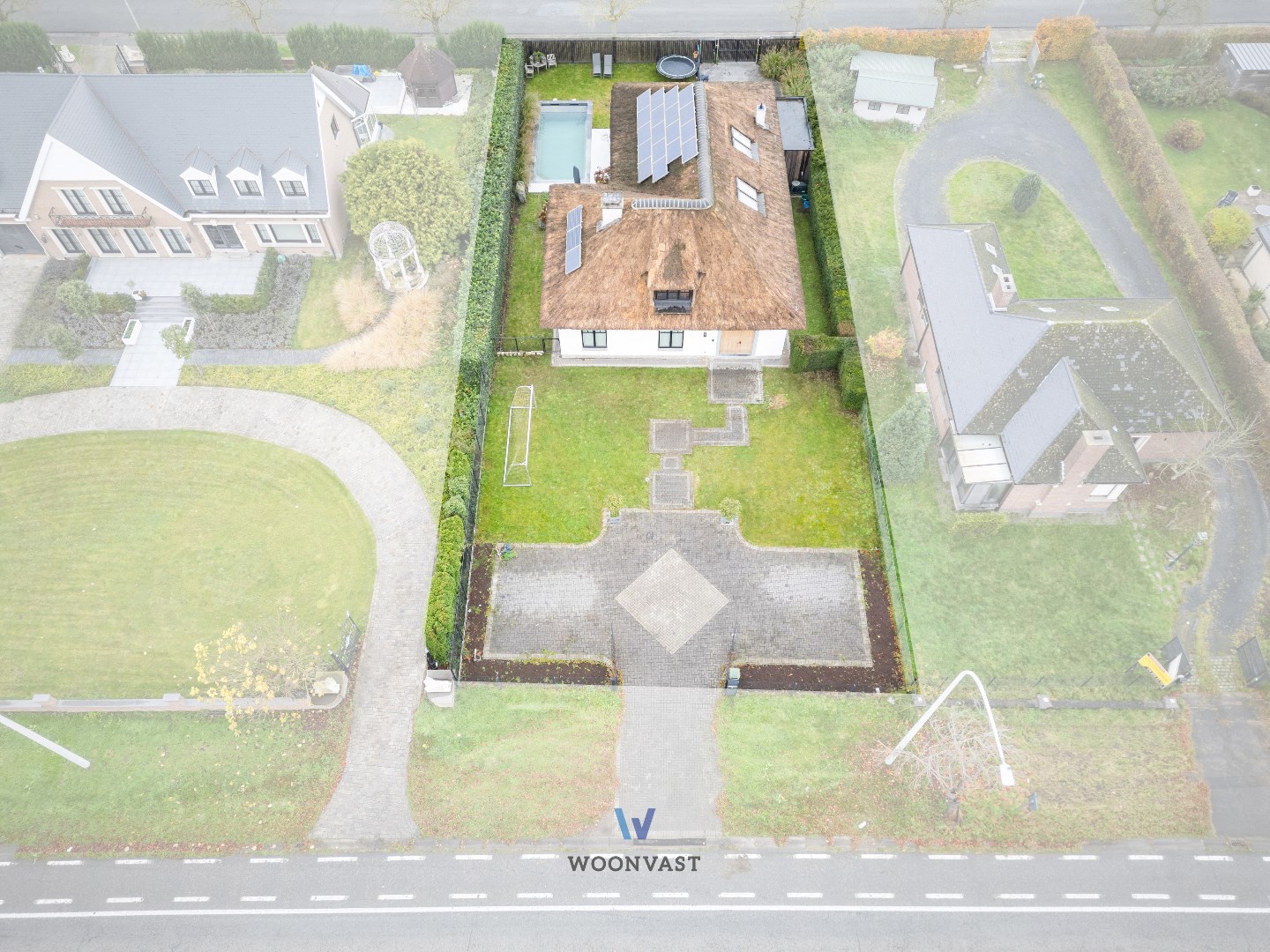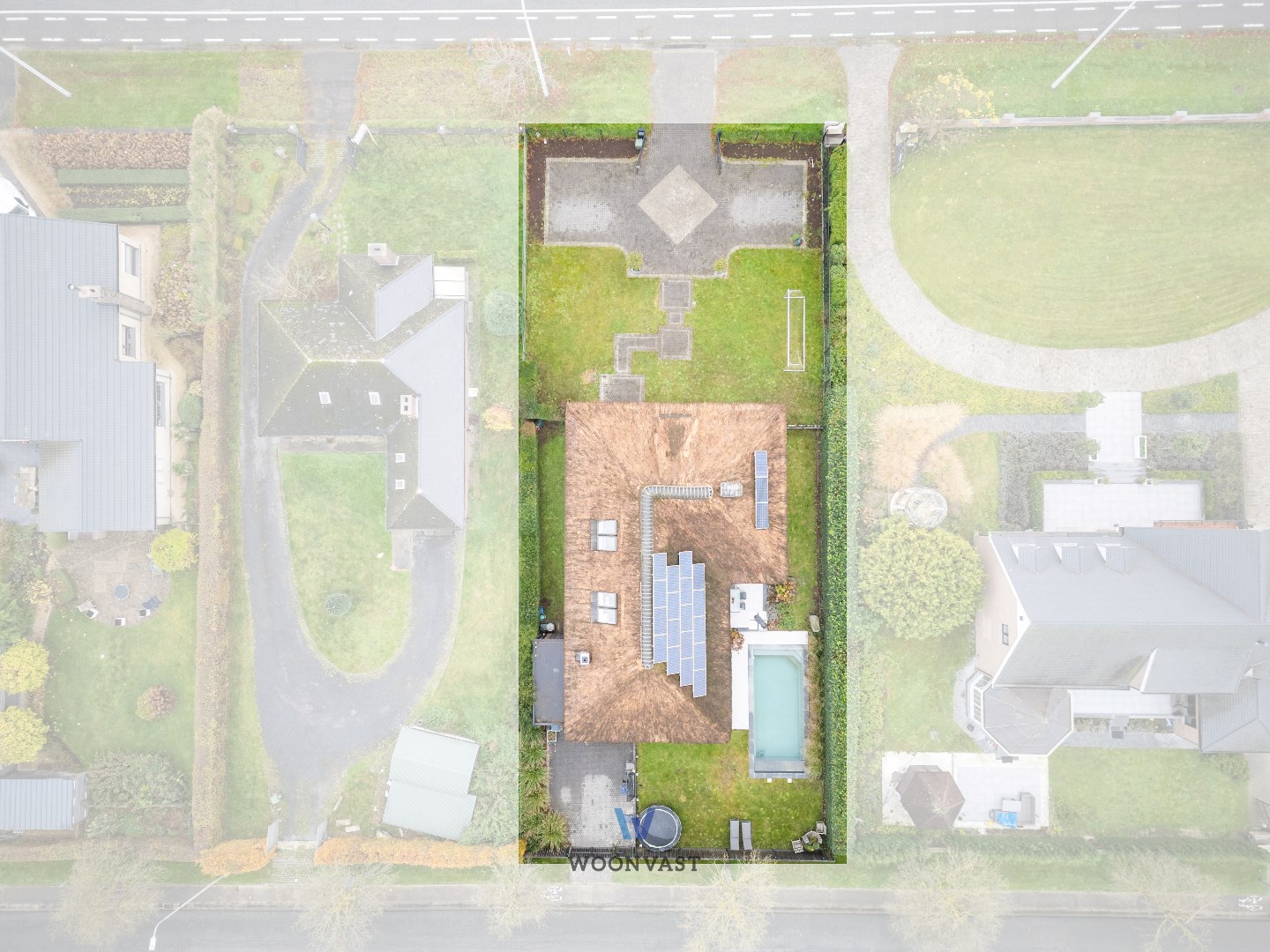 De woning beschikt over een ruime oprit, een mooi aangelegde tuin met verwarmd zwembad, handige tuinberging én een achteruitweg.