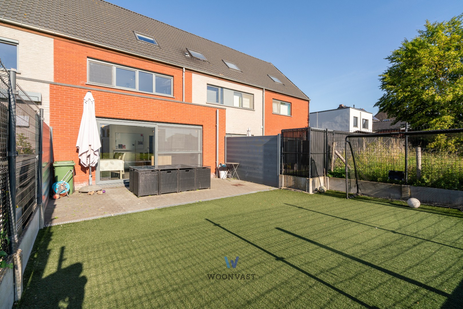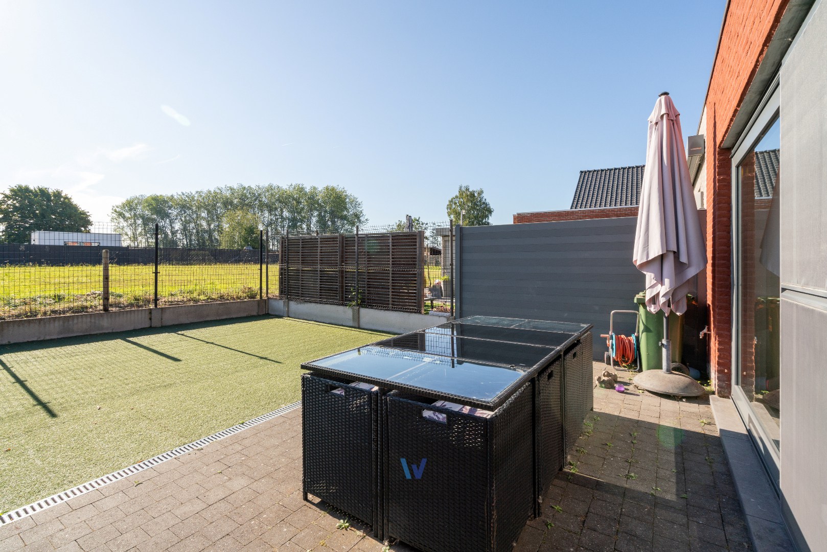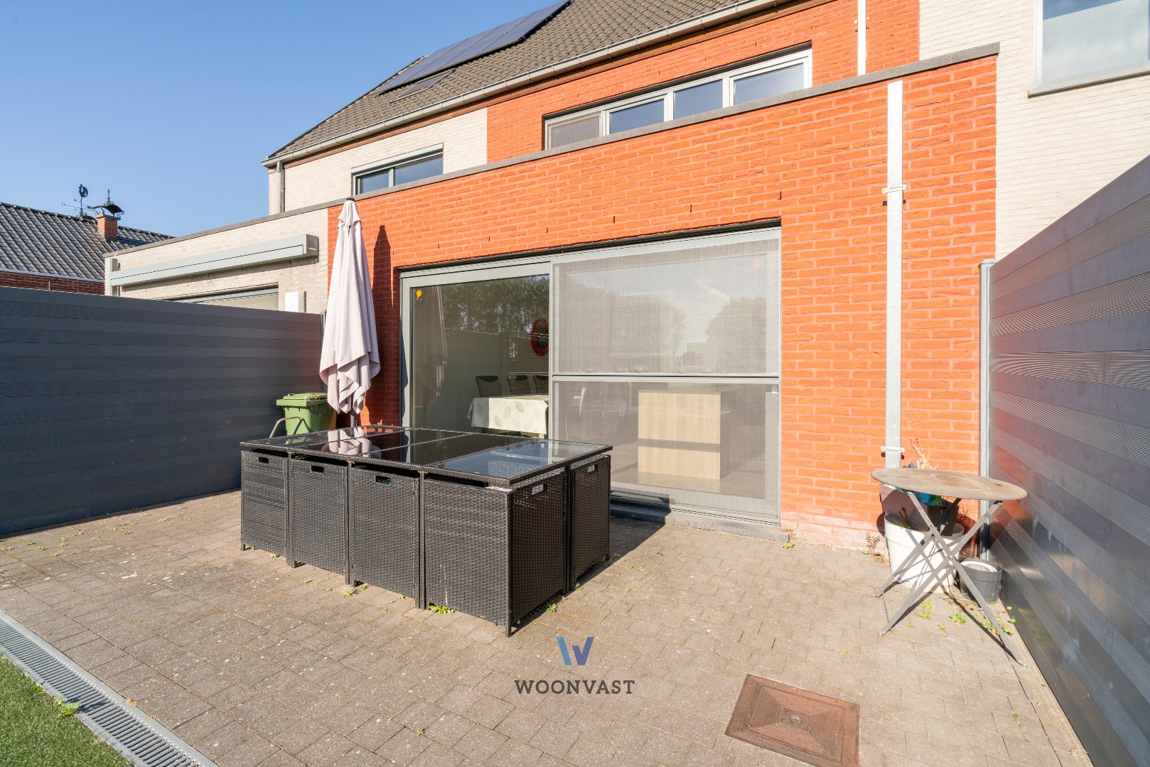De onderhoudsvriendelijke tuin met aangenaam terras biedt een rustige plek om van zonnige dagen te genieten.