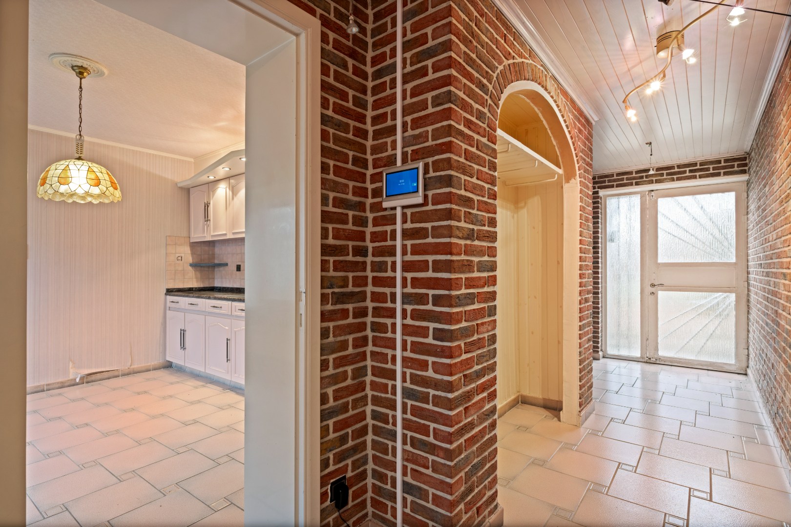 Indeling: Bij het betreden van de woning komen we terecht in de inkomhal met daarnaast de zeer ruime eet- en leefruimte. Naastliggend bevindt zich de keuken. Verder beschikt de woning op het gelijkvloers nog over een ruime berging, een eerste badkamer en een zitplaats/veranda met zicht op de gezellige tuin.