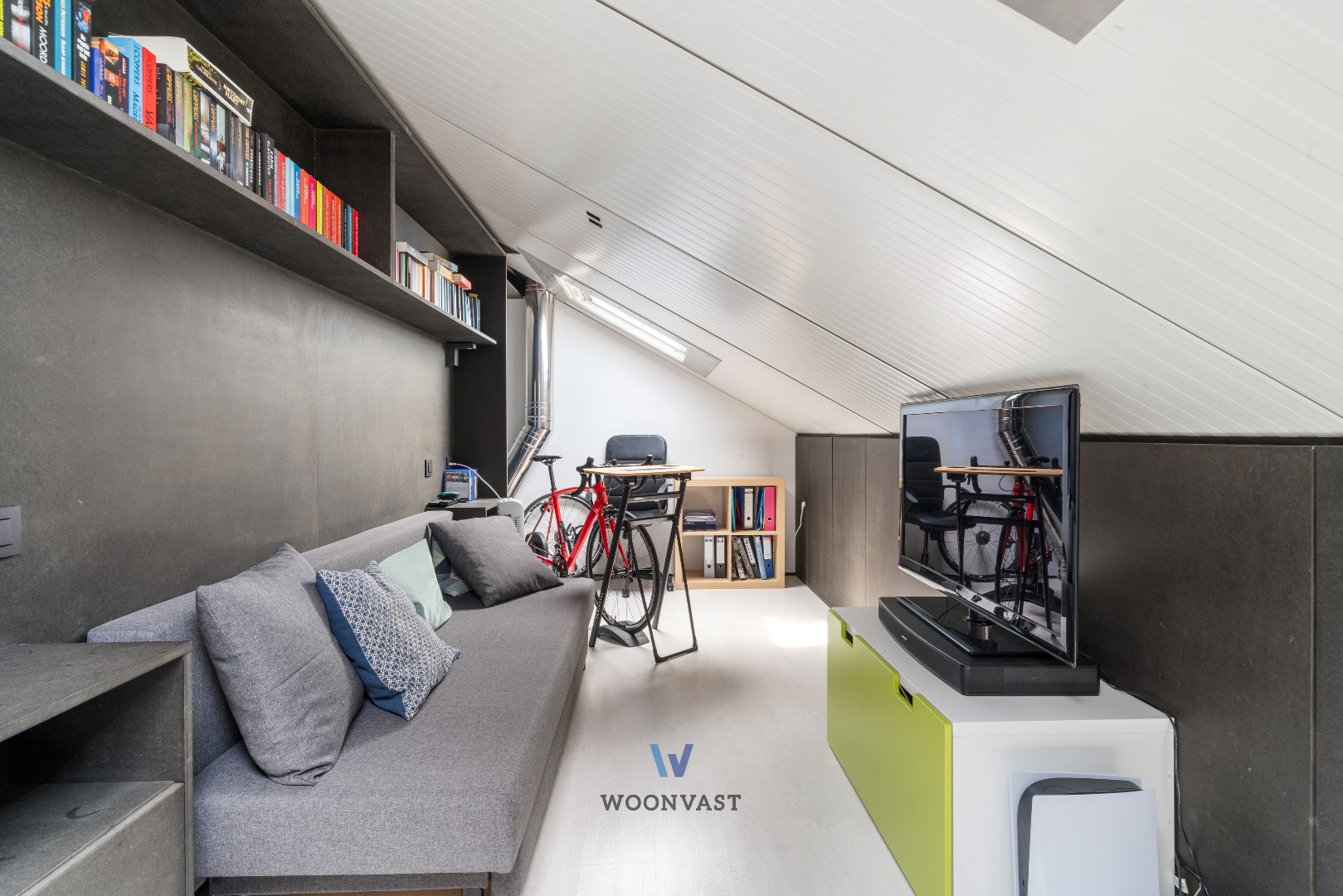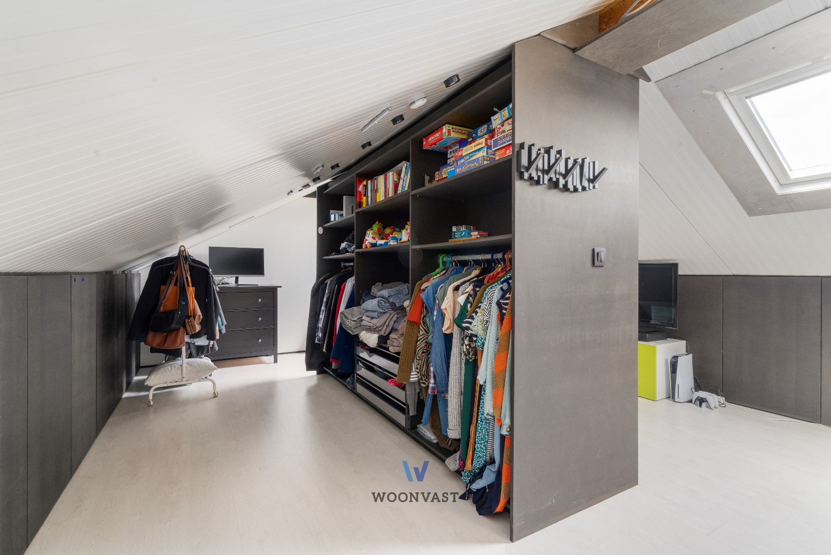 Tot slot biedt een vaste trap toegang tot de zolderruimte die gerenoveerd werd tot een volwaardige slaapkamer met tal van opbergruimte.