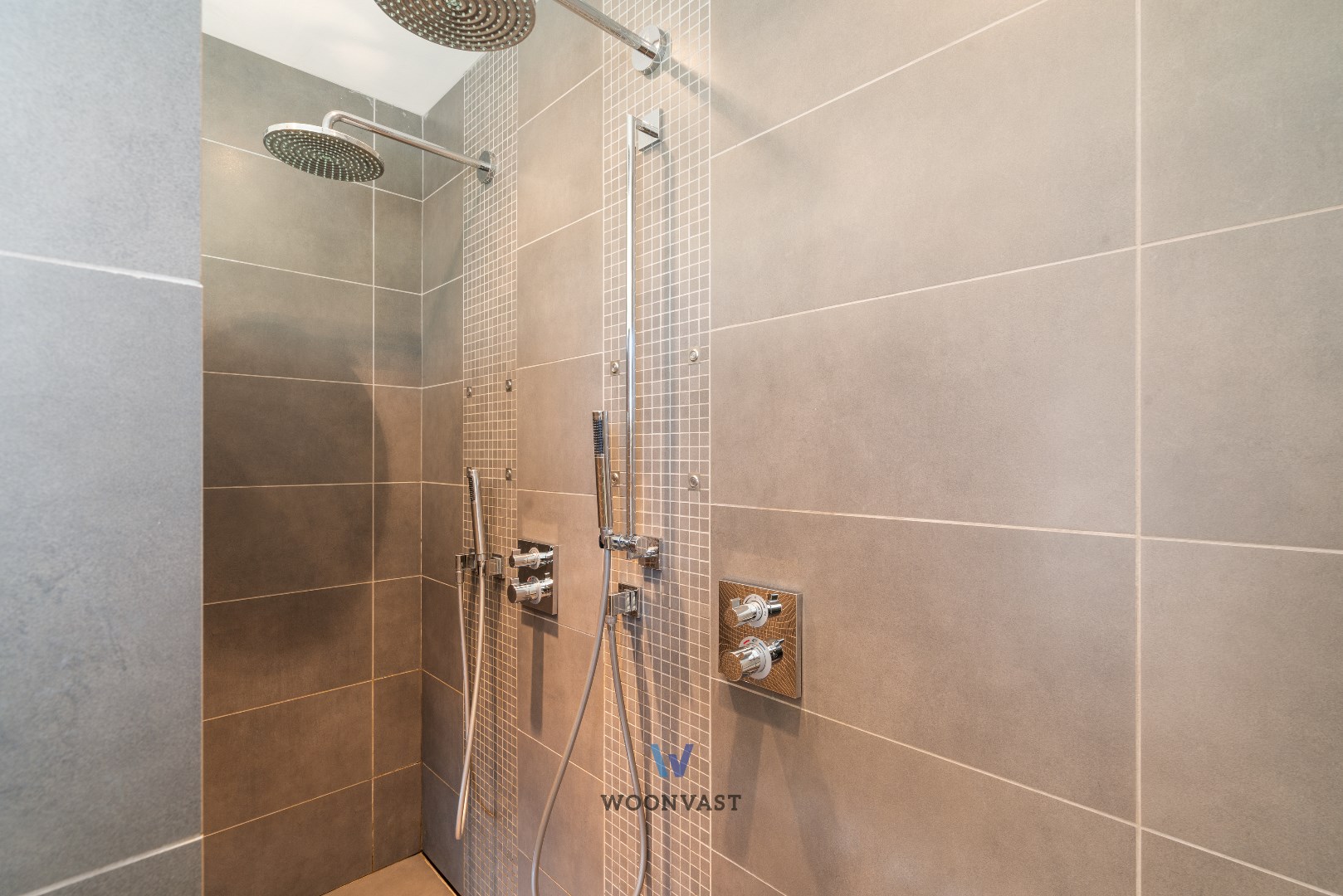 Eerste verdieping: 3 ruime slaapkamers en een badkamer met bad, inloopdouche (met 2 douchekoppen), toilet en dubbele lavabo.
