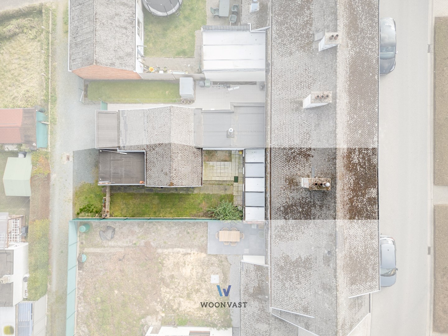 - Achteraan is er een uitweg die toegang geeft tot parkeerplaatsen