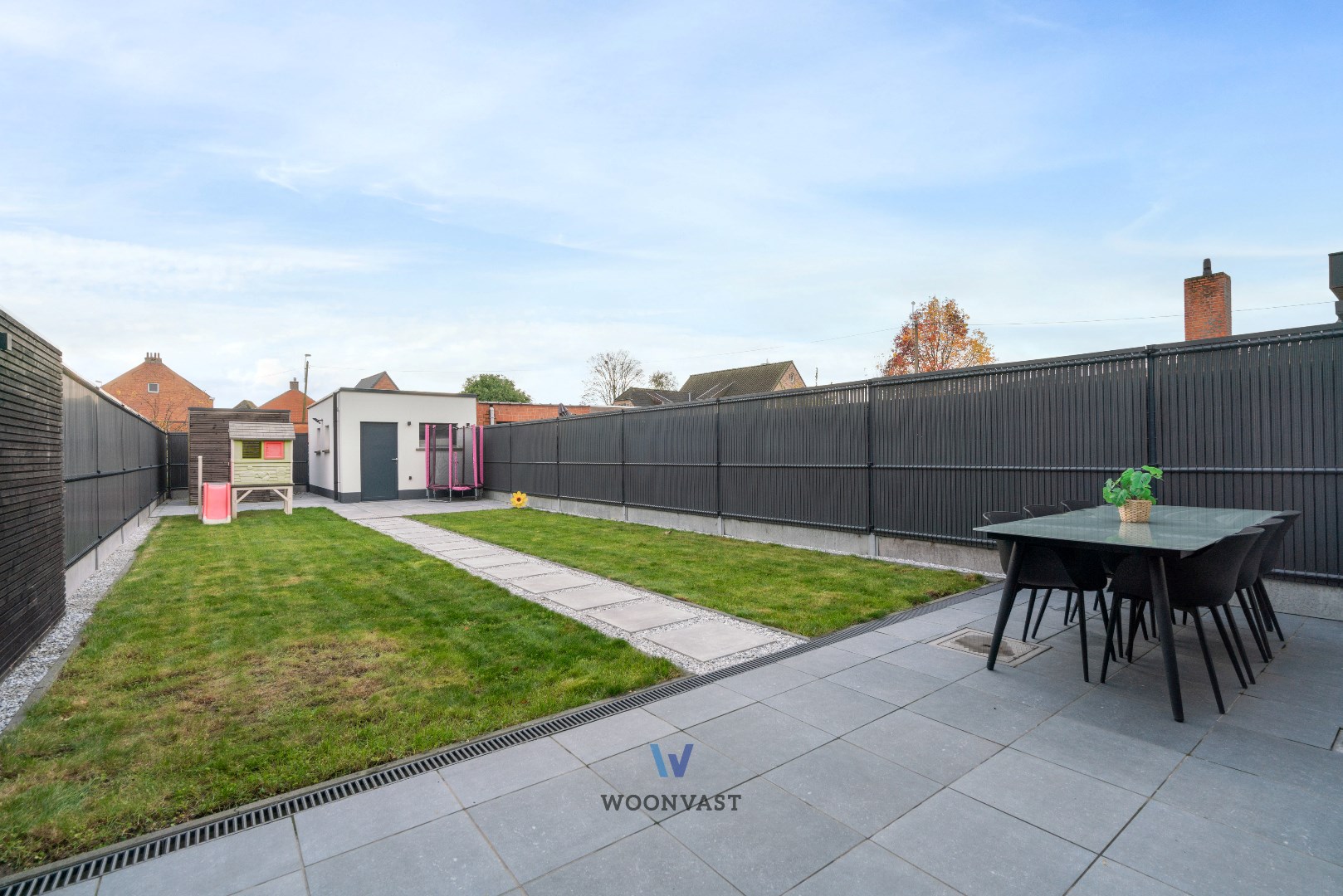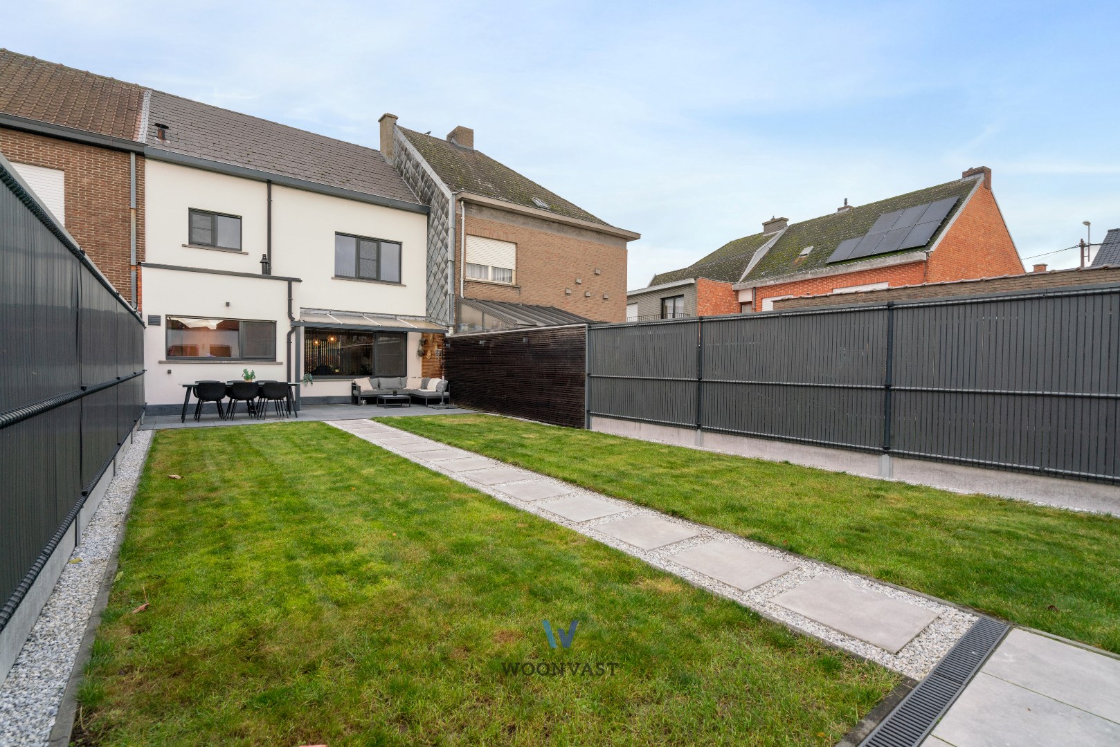 Als kers op de taart is er nog een ruime garage (23m²) met automatische poort (toegankelijk langs de achterkant van het perceel), een tuinhuis en een volledig omsloten, zuid gerichte tuin (aangelegd in 2019) met deels overdekt terras.