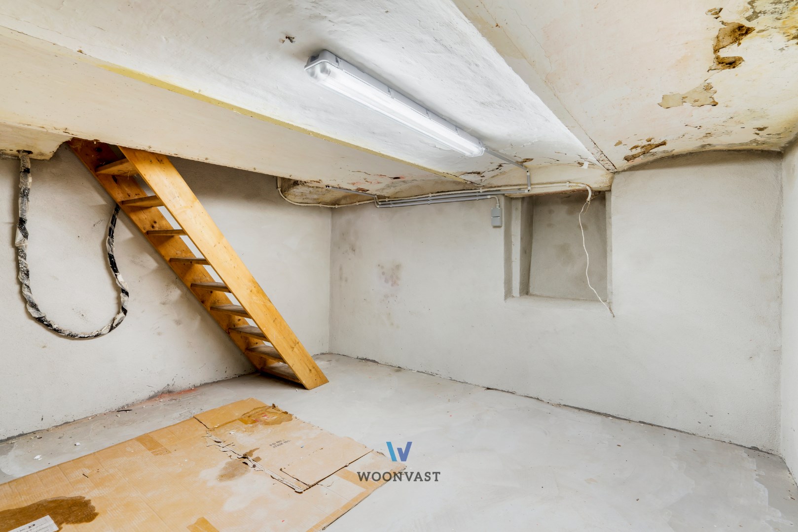 Gvl: Je komt binnen in de inkomhal dat toegang biedt tot de lichtrijke woonkamer. Vanuit de woonkamer kan je de droge, ruime kelder betreden. Aansluitend aan de woonkamer vind je de gezellige keuken met toegang tot de badkamer.