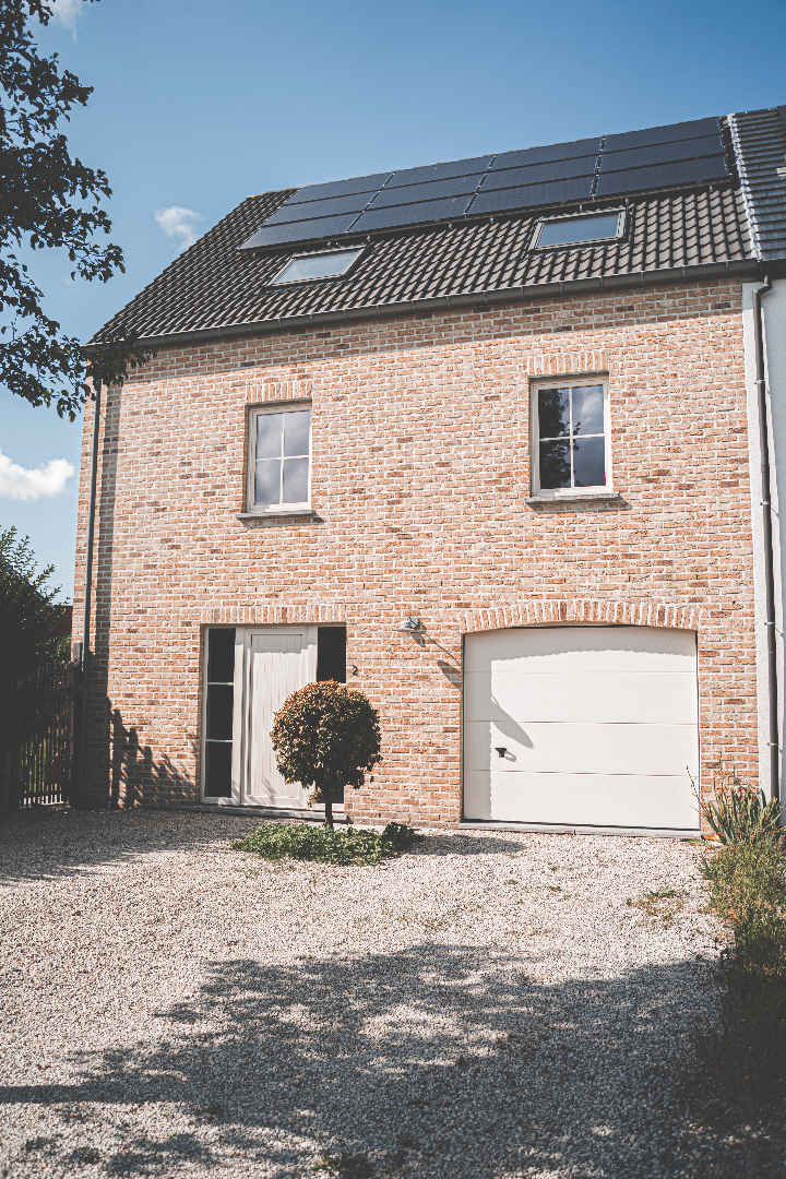 Deze woning onderscheidt op de benedenverdieping de ruime inkomhal, de aparte toilet, de lichtrijke woonkamer met open keuken (vaatwasser, inductiekookplaat, koelkast, vaatwasser, dubbele spoelbak, combi-oven, dampkap), de aanpalende berging met aansluiting voor wasmachine&droogkast, de garage, en de zonnige tuin met ruim terras