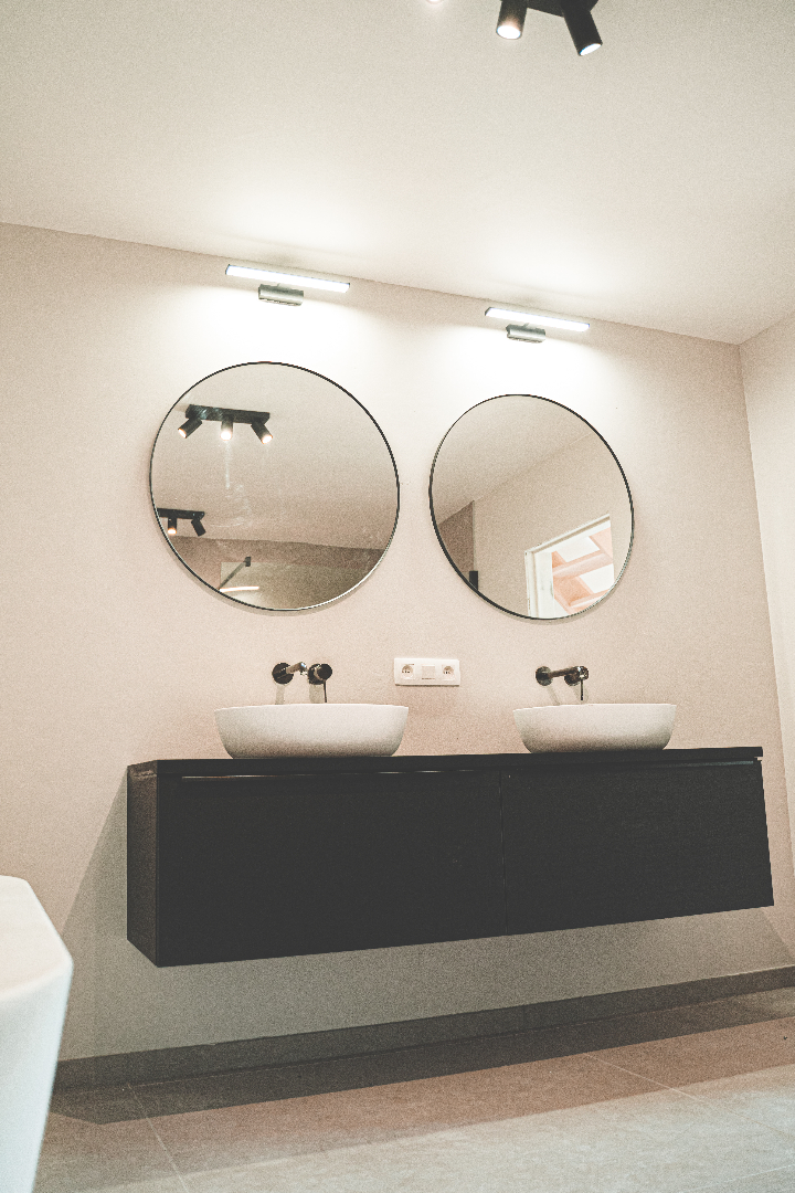 Op de eerste verdieping zijn er 2 ruime slaapkamers, een badkamer (dubbele wastafel in meubel, toilet, ligbad, inloopdouche) en een dresing aanwezig.