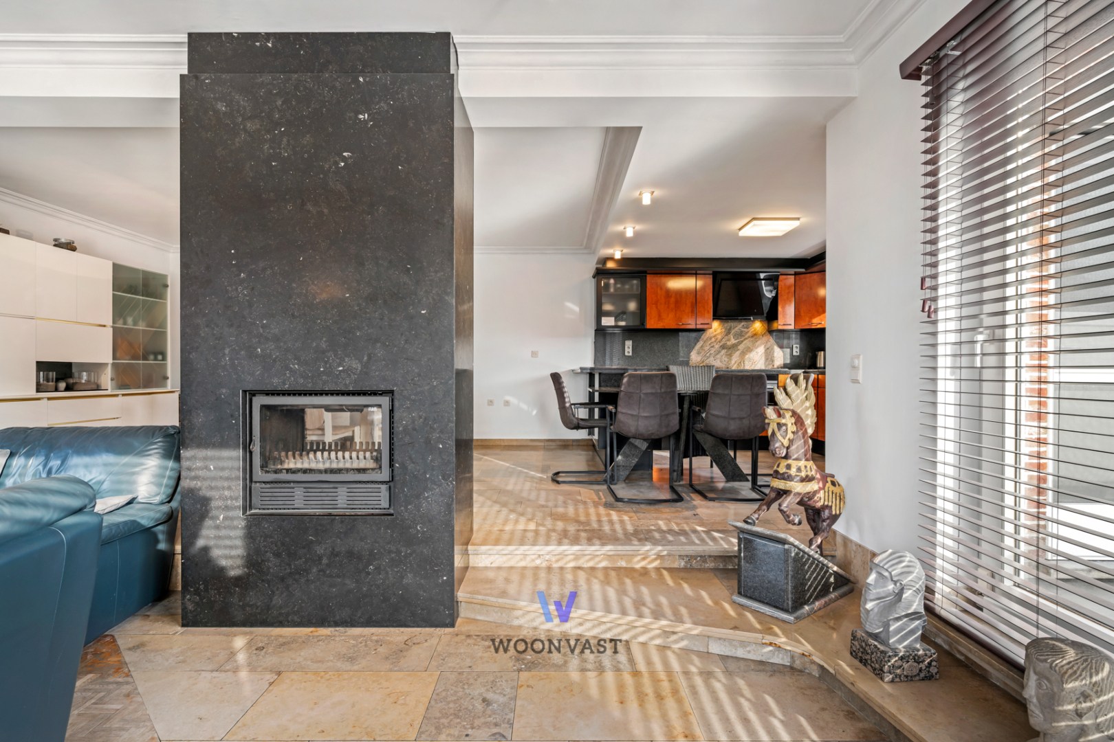 Bij het betreden van de woning wordt u verwelkomd in een elegante inkomhal die meteen toegang verleent tot de lichtrijke leefruimte met open keuken, afgewerkt met kwalitatieve en duurzame materialen.