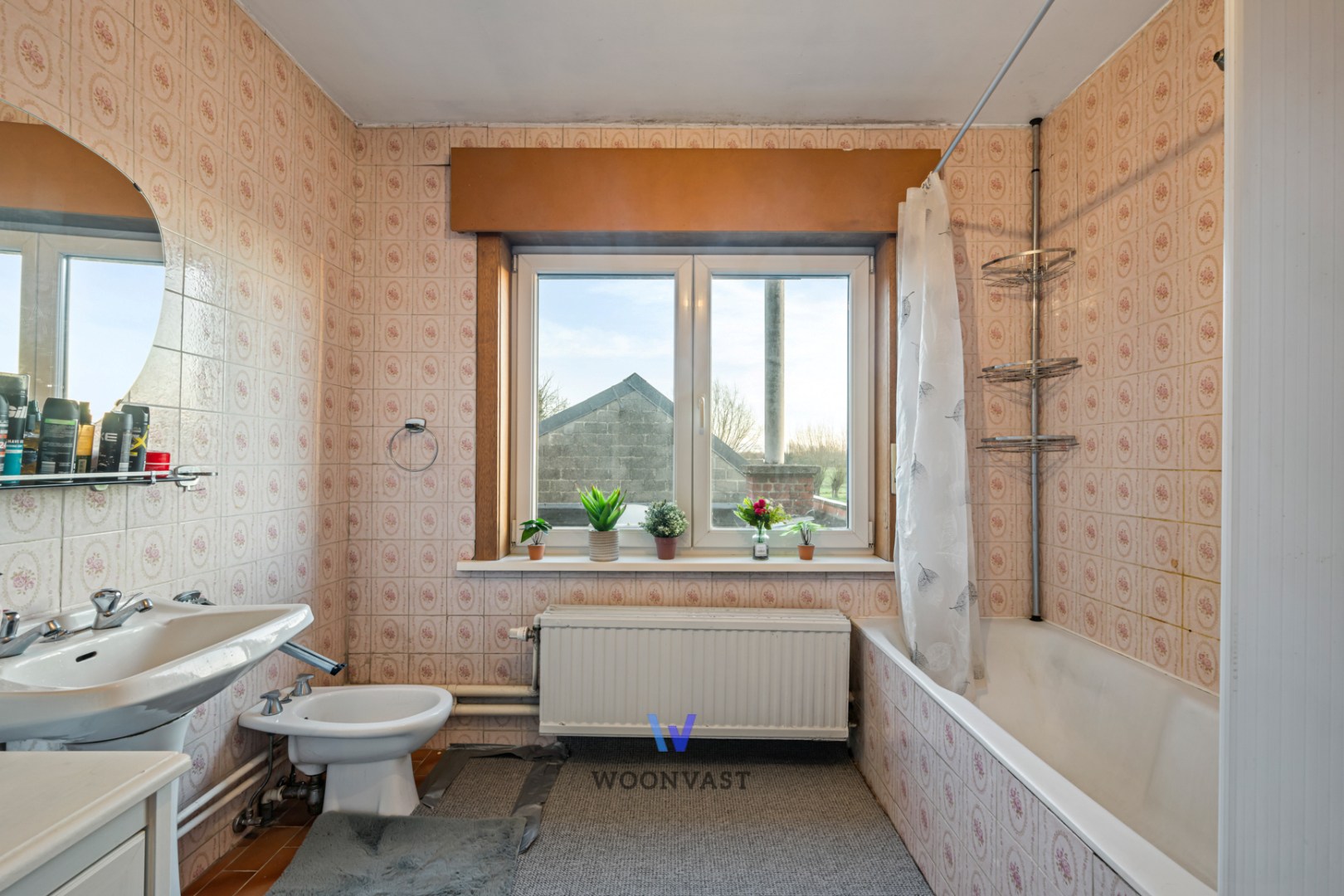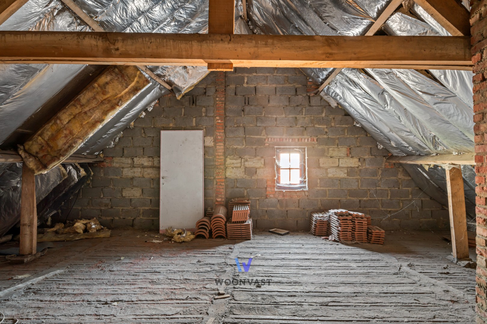 Via de inkomhal bereikt u de ruime eet- en leefruimte met aansluitend de keuken. Achteraan bevindt zich de technische ruimte/berging. Op het verdiep vindt u twee volwaardige slaapkamers, een bureau, een badkamer (ligbad met douche, lavabo en toilet) en een ruime zolder met potentieel voor extra kamers.