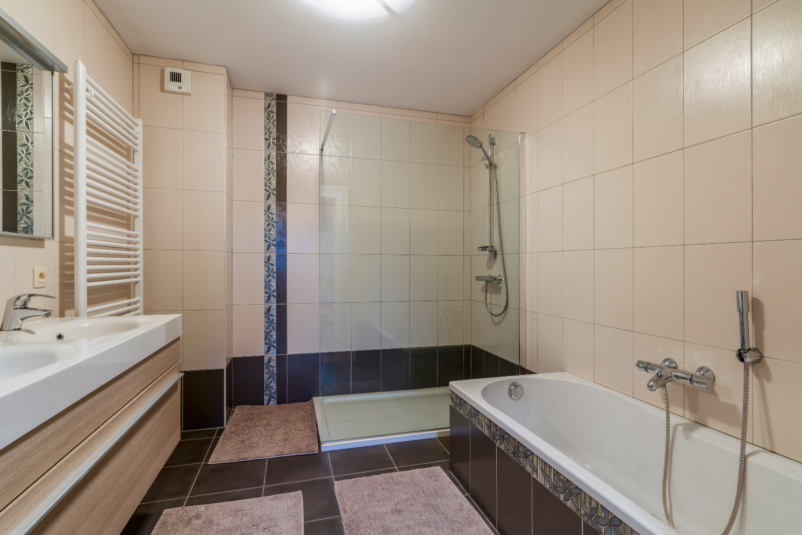 1eV: De nachthal geeft toegang tot 3 slaapkamers, de badkamer voorzien van ligbad, dubbele lavabo en inloopdouche en een apart toilet.