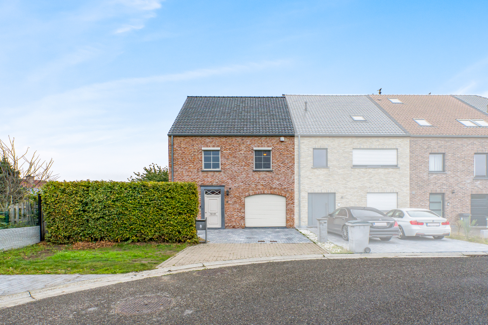 GLV: Je betreedt de woning via de inkomhal voorzien van gastentoilet. Aansluitend bevindt zich de ruime leefruimte opgedeeld in zit- en eetplaats. De lichtrijke leefruimte sluit naadloos aan op de open keuken, die volledig ingericht is. Het grote schuifraam zorgt voor een leuke connectie tussen tuin en leef- en eetruimte. Aanpalend aan de keuken situeert zich een handige berging met aansluitingen voor wasmachine en droogkast. Tenslotte is er nog een ruime garage met sectionaal poort.
