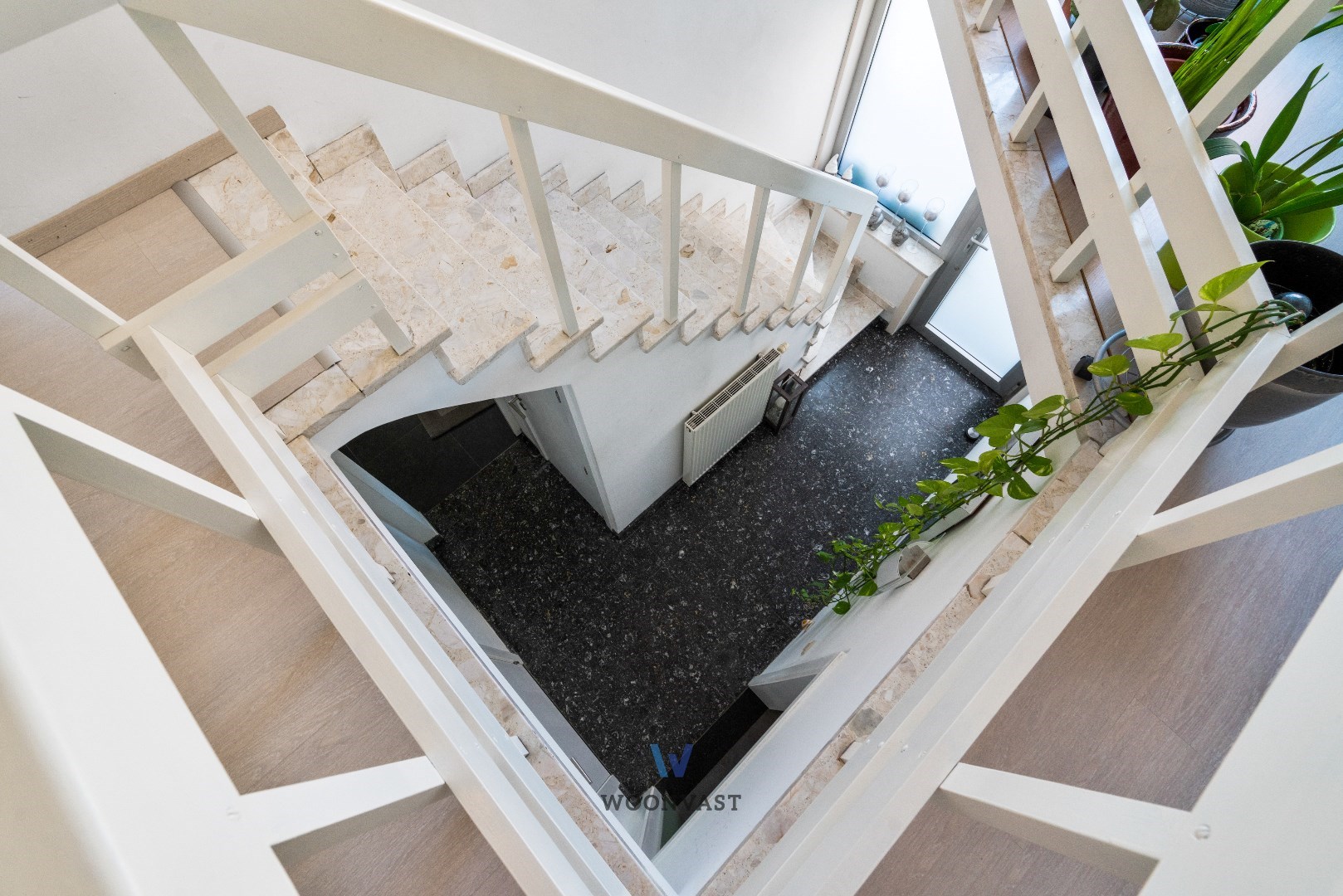 De inkomhal met gastentoilet leidt enerzijds naar het cosy, ruime leefgedeelte (40m2) met grote raampartijen en anderzijds naar de moderne, geïnstalleerde leef keuken (16 m2 - in 2019 volledig gerenoveerd) met hoogwaardige materialen afgewerkt.