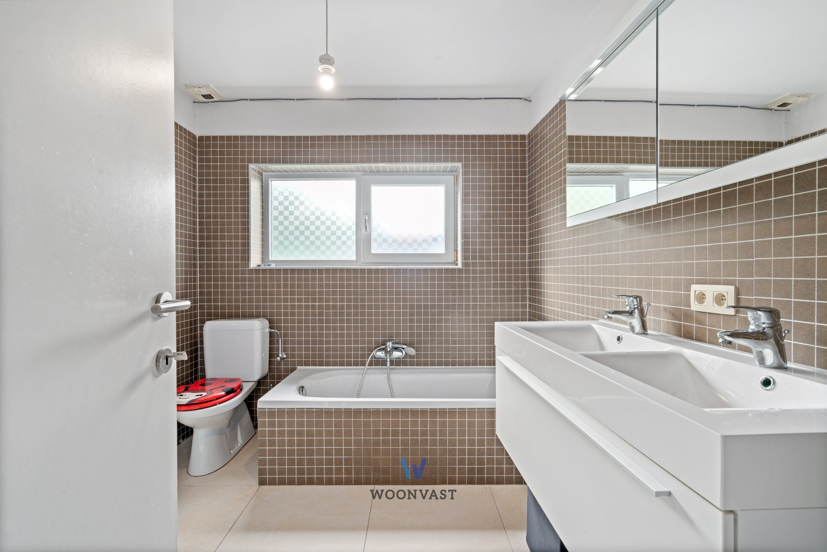 Op de eerste verdieping vind je twee slaapkamers. De badkamer is voorzien van een bad, douche, dubbele wastafel en een toilet.