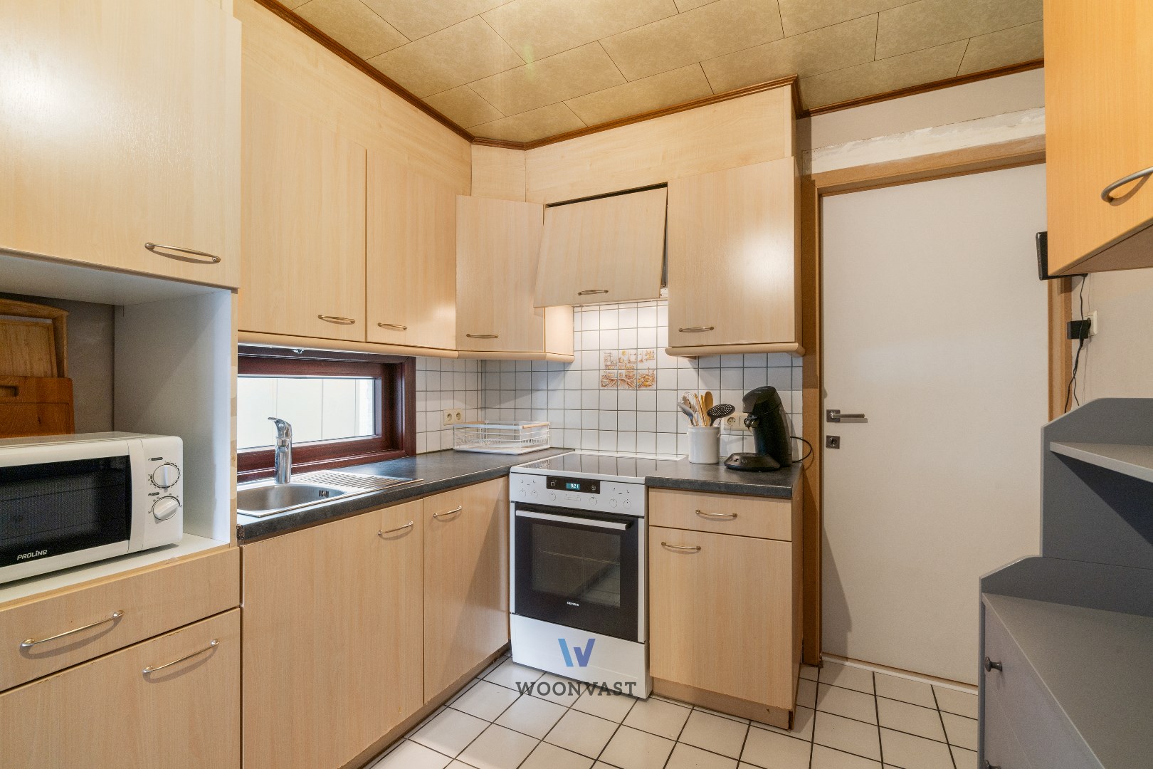 0: Inkom, gezellige leefruimte, volledig uitgeruste keuken, badkamer.