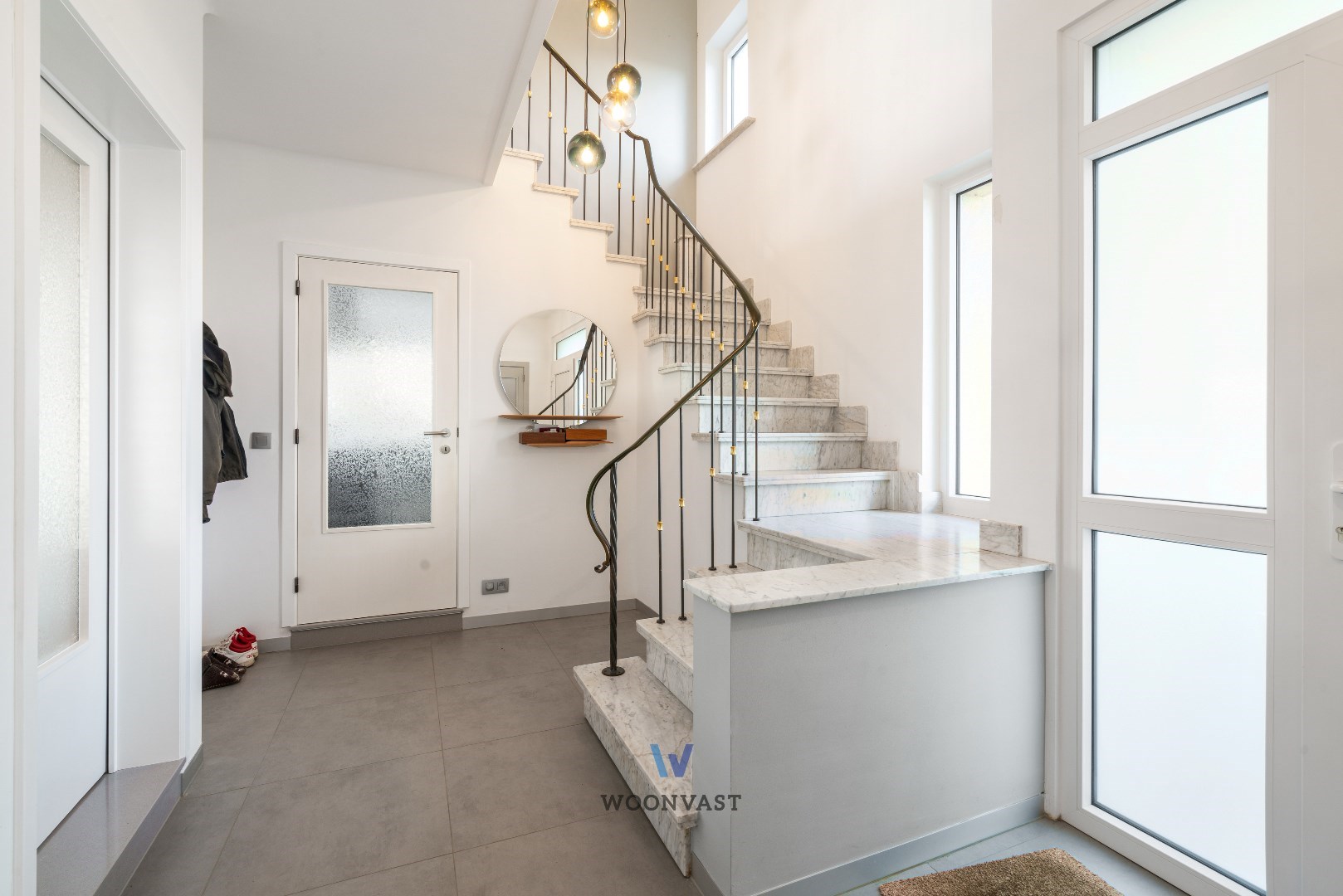 Binnen ontdekt u drie ruime slaapkamers die ideaal zijn voor een gezin of voor wie een thuiskantoor wenst. De authentieke elementen zoals de stijlvolle binnendeuren en de marmeren trap geven het interieur een tijdloze elegantie.