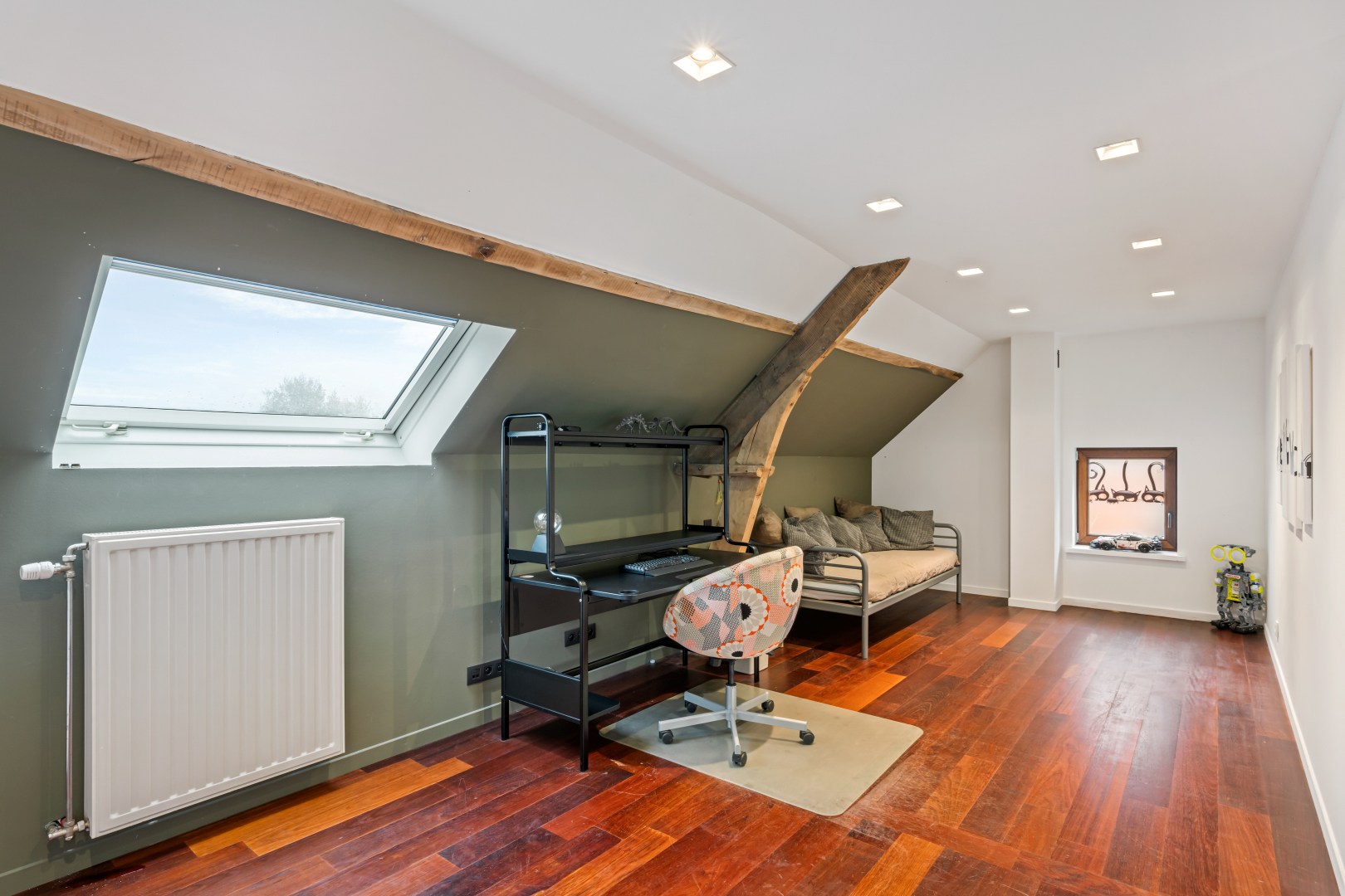 De woning telt momenteel 3 slaapkamers, met de mogelijkheid om eenvoudig een vierde slaapkamer te creëren. Op het gelijkvloers kan deze extra slaapkamer én een tweede badkamer worden ingericht, waardoor levenslang wonen mogelijk wordt en de woning rolstoelvriendelijk kan worden gemaakt.
