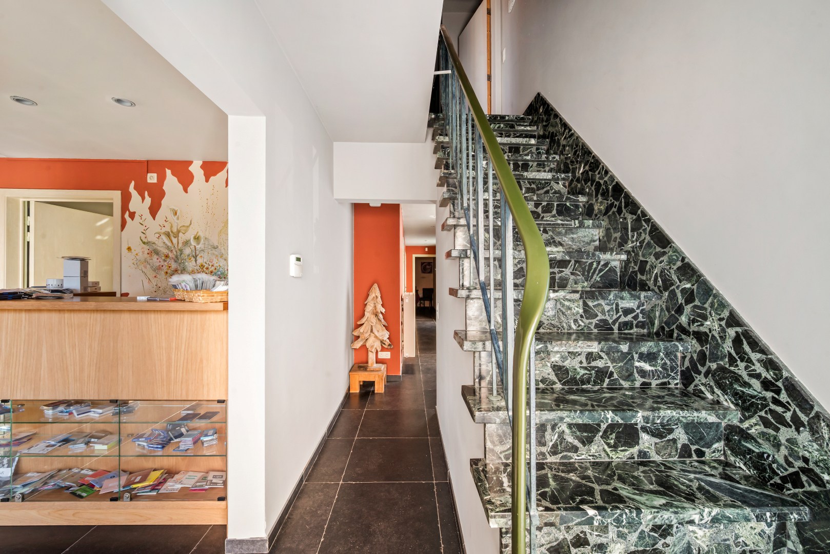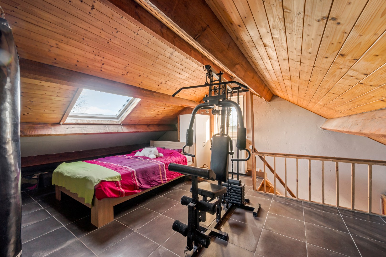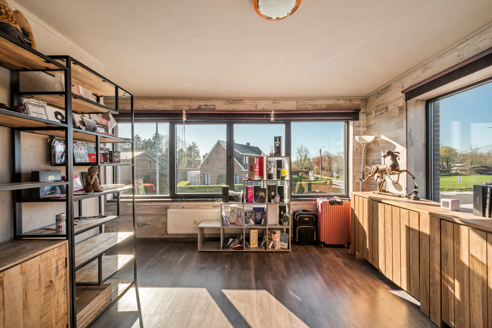 Bij het binnenkomen valt meteen de praktische indeling op. Op het gelijkvloers bevindt zich een ruime praktijk- of hobbyruimte, ingedeeld in meerdere zones. Ideaal voor zelfstandigen of wie wonen en werken wil combineren, met behoud van privacy. Verder beschikt de woning over praktische bergruimtes en meerdere afzonderlijke toiletten.