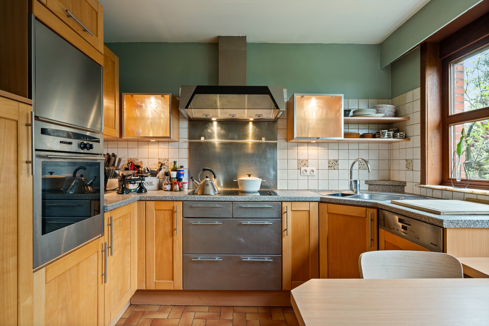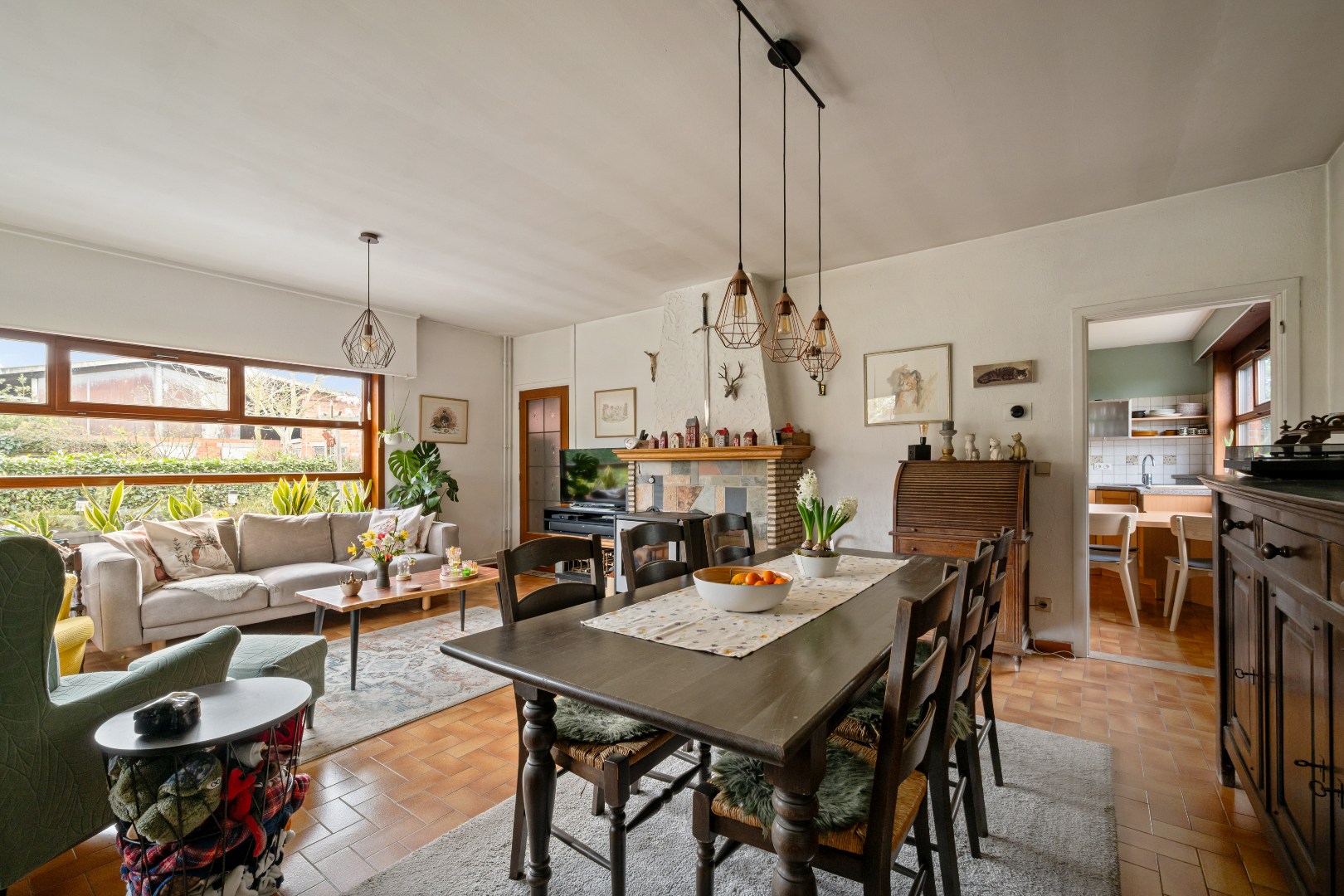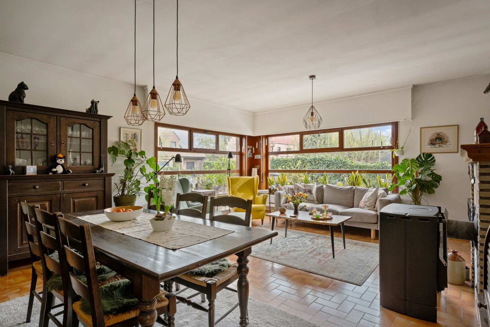 Binnen valt meteen de aangename lichtinval op. Op het gelijkvloers bevindt zich de leefruimte die in directe verbinding staat met de uitgeruste keuken, wat zorgt voor een open en praktische indeling. Dankzij de grote ramen geeft het geheel een extra ruimtelijk gevoel.