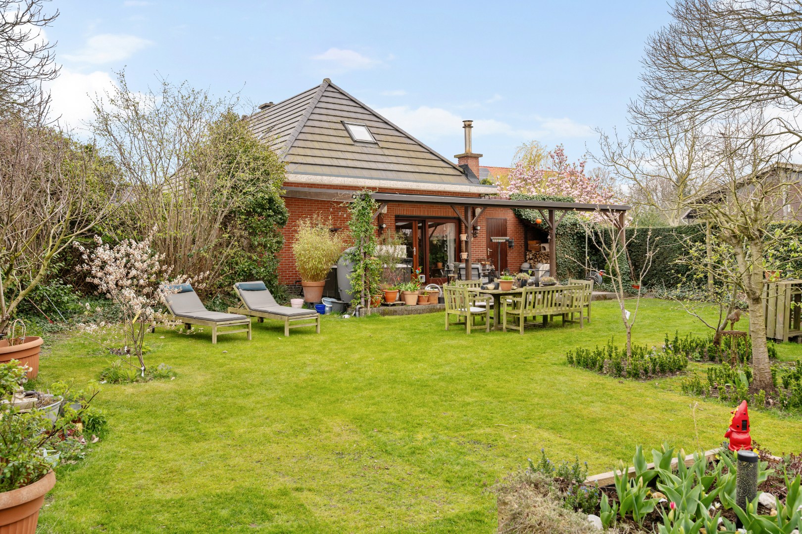 De tuin achteraan is ruim en omgeven door groen. Een fijne buitenruimte voor wie houdt van rust of tuinieren.