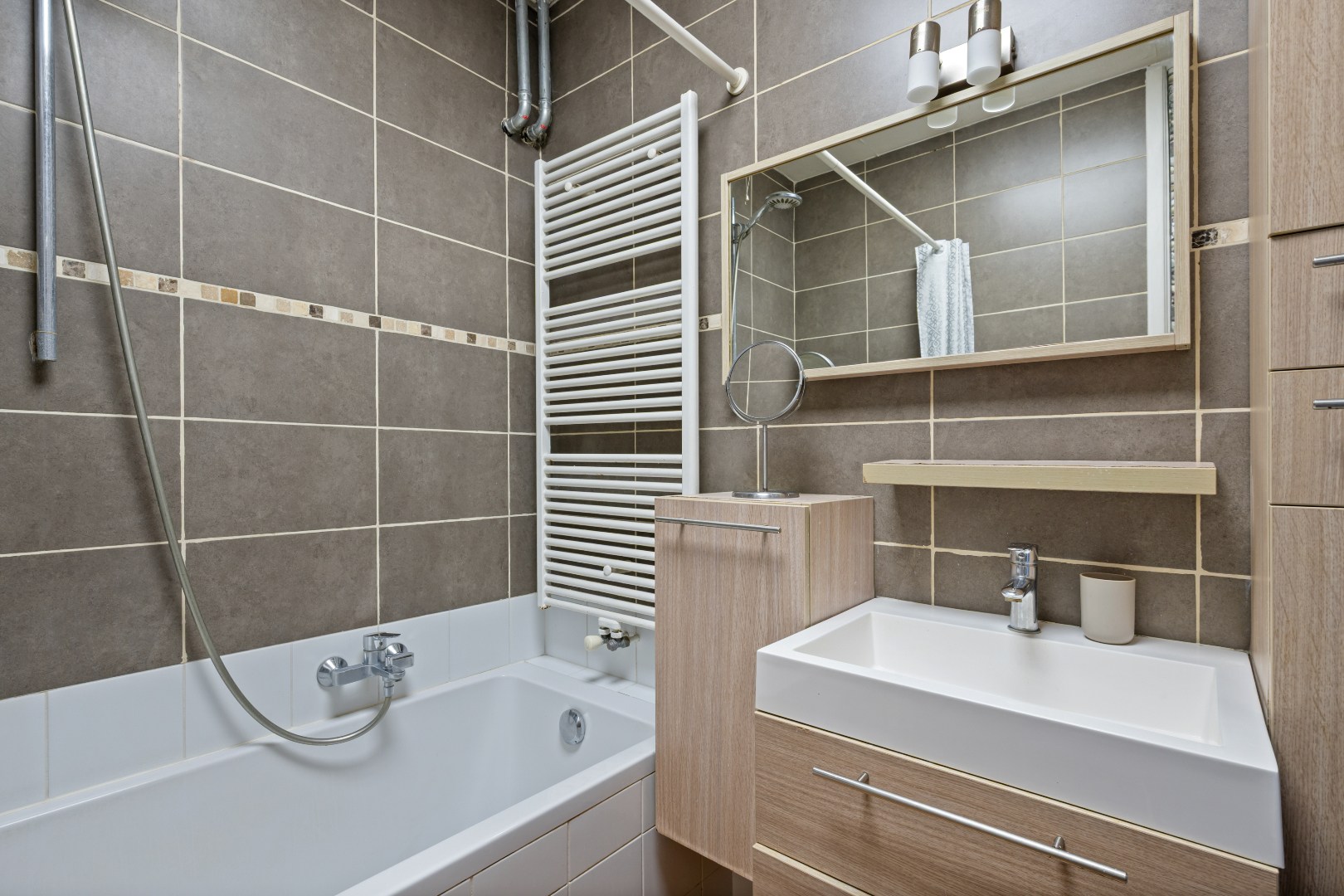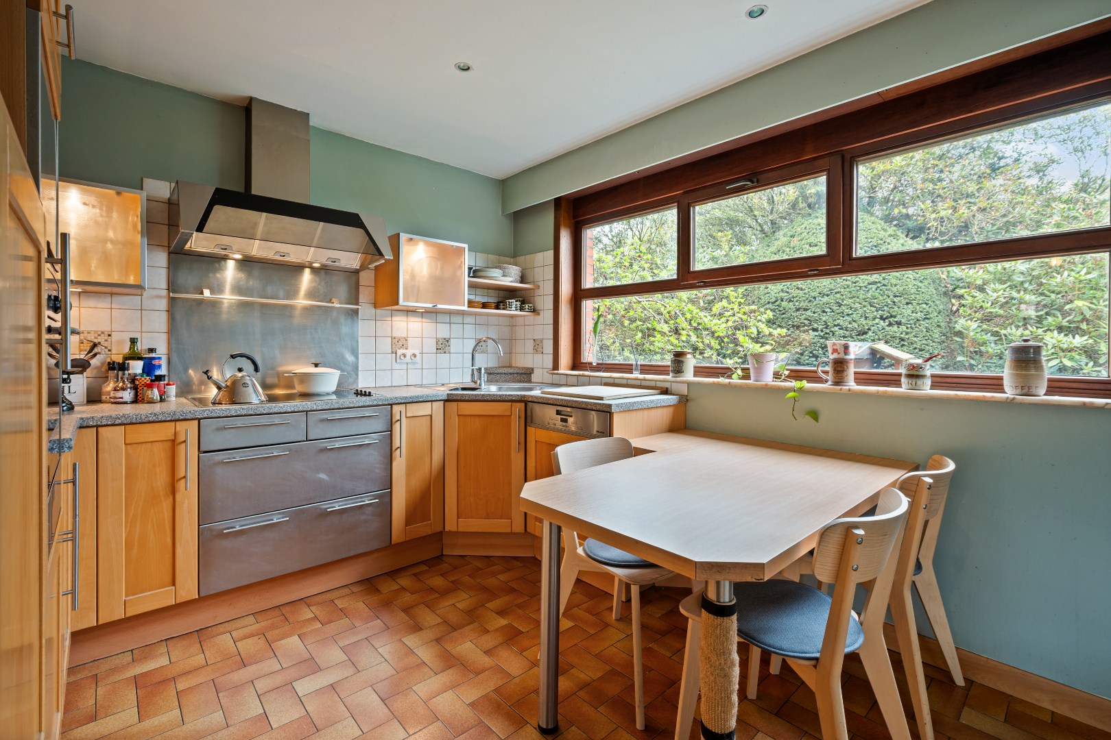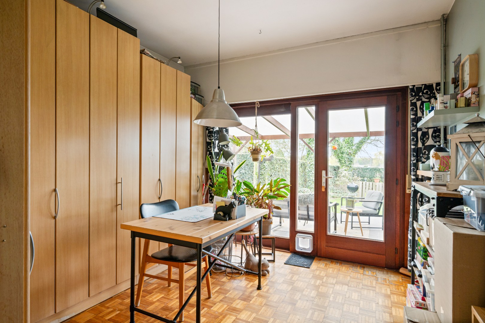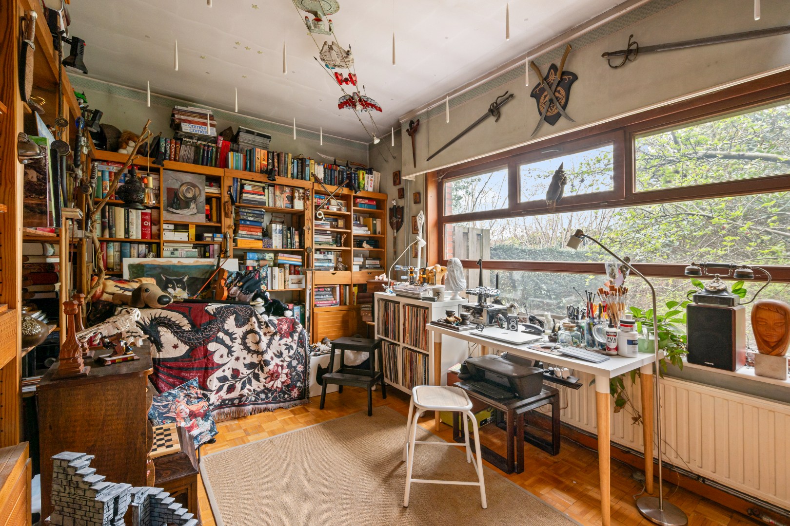 Verder beschikt de woning over een badkamer met ligbad en lavabo, evenals een afzonderlijk toilet. Daarnaast zijn er twee extra ruimtes, waaronder een hobbykamer en een aparte bureauruimte met rechtstreekse toegang tot de tuin — ideaal voor thuiswerk of het uitoefenen van een hobby.