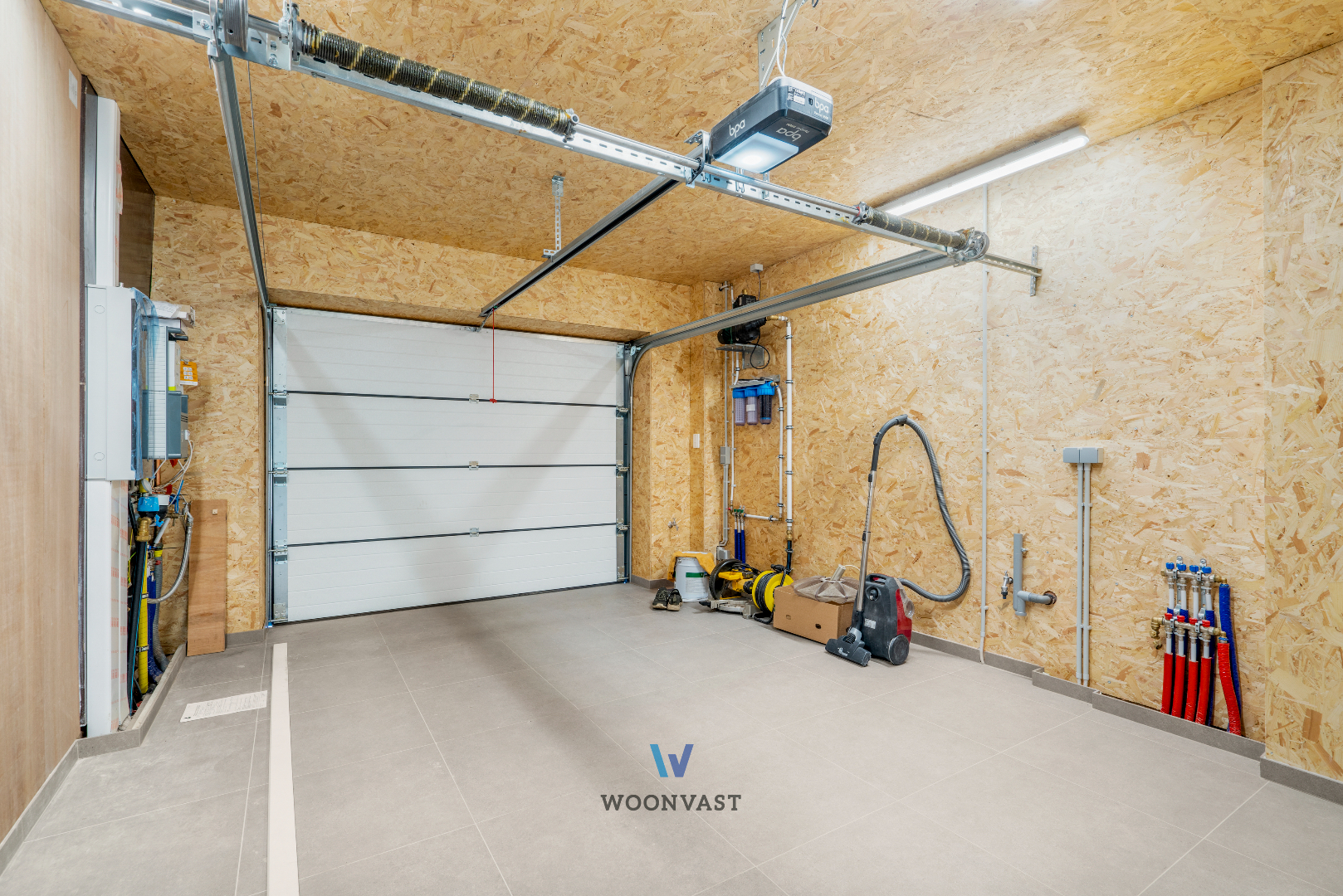 Verder herbergt deze verdieping nog een tussenruimte met apart toilet en aansluitend een ruime inpandige garage met aansluitingen voor wasmachine en droogkast.